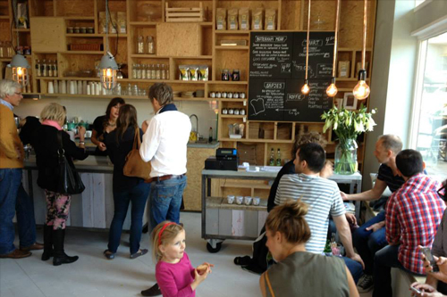 There is a new sandwich shop / conceptstore in town! It’s called “Boterham” and is located in Amsterdam East. The owner, Manon opened the doors of Botherham a few months ago at the corner of the Andreas Bonnstraat. The building has red painted walls and a big playful logo on the window, so you just can’t miss it if you walk by!