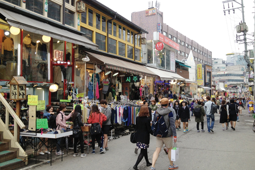 In de grote hoofdstraten van Hongdae is het altijd heel erg druk. Je wordt overspoeld met kleine kleding winkels die hun muziekboxen op maximaal hebben staan met Koreaanse popmuziek. Hier vind je leuke goedkope kleding, sieraden, schoenen en nog veel meer!